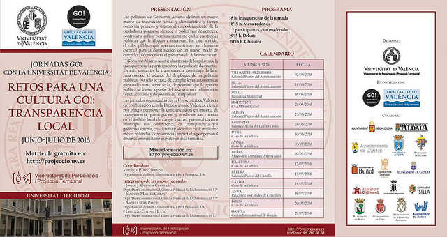 Bétera acull una jornada sobre transparència i participació organitzada per la UV. El proper 13 de juliol Bétera acollirà una conferència sobre transparencia, participación i rendició de comptes a l’àmbit local. L’encontre s’emmarca dins el seminari territorial anomenat “Jornada/es Universitat de València-municipi de” organitzat per la Universitat de València a distintes poblacions valencianes.