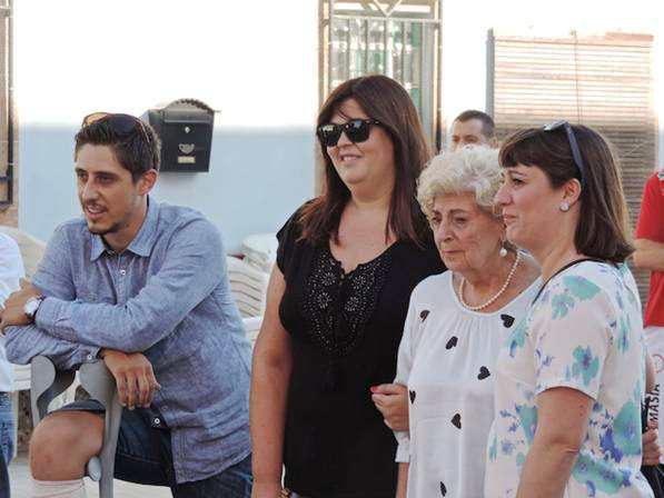 Maruja Morla, visiblement emocionada, i el seu nét Hèctor Ribes van donar les gràcies a l’Ajuntament i a tot el món de la pilota.
