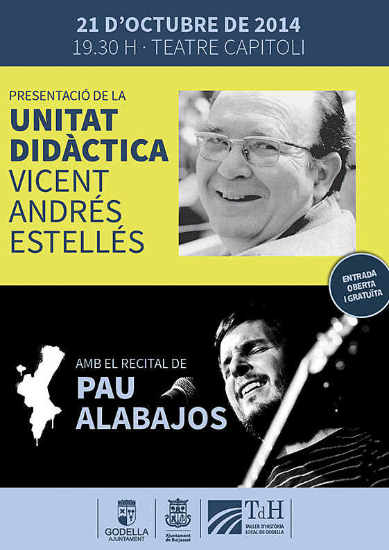 L’acte de presentació de la unitat didàctica, en forma d’antologia sobre l’escriptor burjassoter tindrà lloc dimarts que ve 21 d’octubre, a les 19:30 h, en el Teatre Capitoli de Godella. La presentació es completarà amb l’actuació del cantautor de Torrent, Pau Alabajos. A les persones que assistisquen a la presentació se’ls obsequiarà amb un exemplar d’aquesta unitat didàctica.