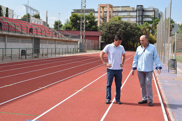En primer lloc, García i Pérez Menero han visitat les obres a l’interior del Pavelló Cobert, on s’està procedint a la substitució del sòl i, a continuació, han visitat el Poliesportiu Municipal. És allí on l’obra per a la substitució del paviment de la pista d’atletisme està ja molt pròxima a la seua finalització. En aquests moments, s’estan ultimant els últims treballs però, tal com s’aprecia en la imatge, el canvi de paviment està totalment finalitzat i presenta un aspecte immillorable que, molt ràpid, podran gaudir els joves atletes que cada dia entrenen en aquestes pistes.