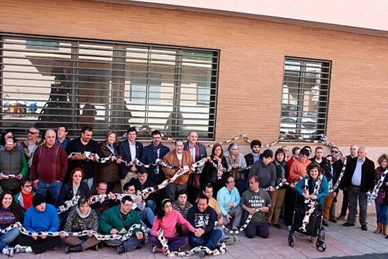 Diferents membres de les associacions de veïns del municipi, al costat dels representants municipals i als membres de Renàixer, han envoltat l’edifici amb cadenes de paper per mostrar el seu descontentament davant la falta de resposta per part de la Conselleria d’Educació i per tant de la Generalitat Valenciana quant a la cessió de l’edifici.