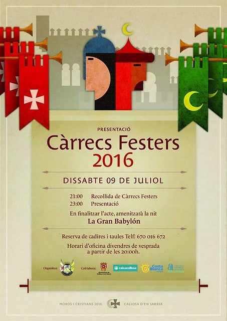 A les 23.00 hores serà quan comence l’acte de presentació amb el traspàs de càrrecs en l’escenari que s’ha instal·lat a la plaça del Convent, en el qual també hi haurà una actuació musical de la Gran Babylón. Els nous càrrecs de les festes de Moros i Cristians 2016 són els següents: