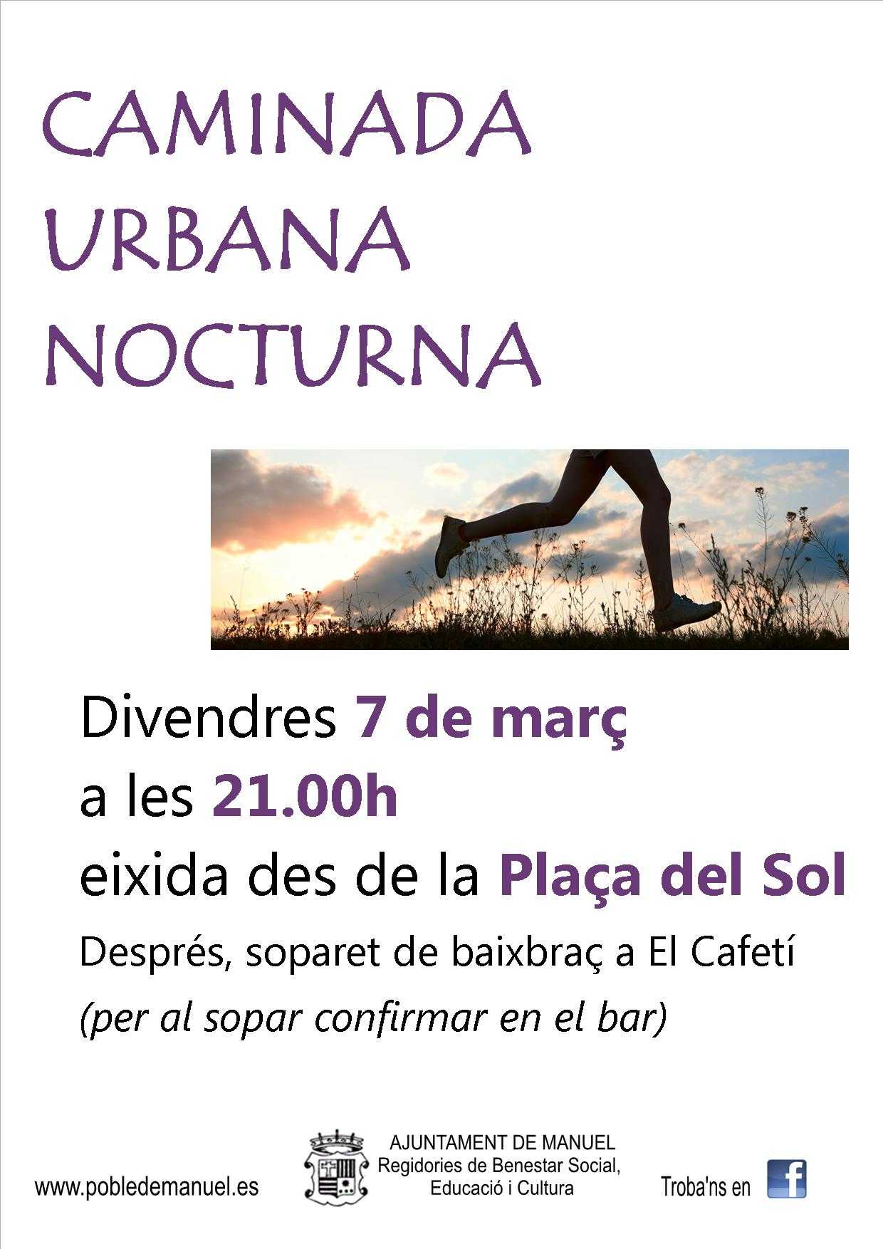 D’ací a una setmaneta, el divendres 7 de març, farem una Caminada Urbana Nocturna.