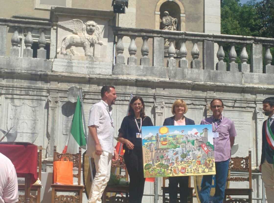 Després de l’actuació dels sbandieratori i de la Banda Della Cità di Feltre es va procedir a la signatura del document que confirma la relació d’agermanament entre les dos ciutats. Durant el torn d’intervencions, Teresa Oliver va agrair el bon acolliment rebut als més dels 40 carcaixentins i carcaixentines que han participat en l’encontre de famílies celebrat a Feltre este cap de setmana. A continuació, aprofitant els vincles que s’estableixen en este tipus de trobades viscuts en primera persona, va destacar tots els efectes positius que se’n deriven dels processos d’agermanament, “agermanar implica enfortir les relacions entre les persones per superar les fronteres polítiques i ideològiques i consolidar així els ideals d’unitat, solidaritat i harmonia amb què va néixer la Unió Europea”.