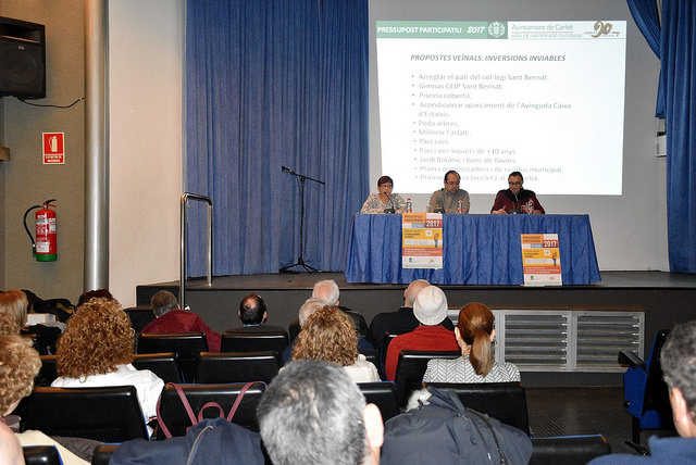 Els veïns i veïnes poden votar tres propostes de les deu que hi ha fins el penúltim dia de l’any. Es pot votar tant telemàticament a través de la pàgina web de l’Ajuntament i al mateix Ajuntament. Les propostes seleccionades durant este període de votació seran ordenades per nombre de vots obtinguts i les tres primeres seran incloses en el capítol d’inversions del pressupost del 2017. El govern carletí s’ha marcat com a objectiu que almenys el 40 % de les inversions partisca d’estes propostes.