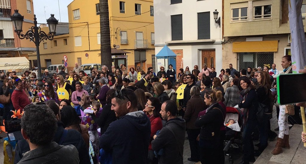 Després d’arreplegar els companys i amics del col·legi Hernández i de l’escoleta Infantil, respectivament, els dos grups coincidiren a la plaça de Pepe Roig; i des d’ací començaren, acompanyats per la Policia Local, el passacarrer col·lectiu pel centre del poble fins arribar a la plaça de l’ajuntament.