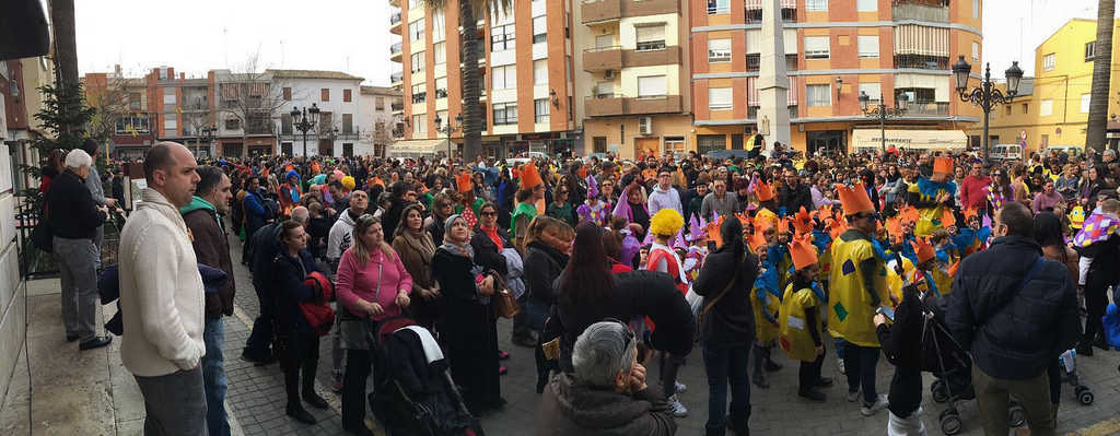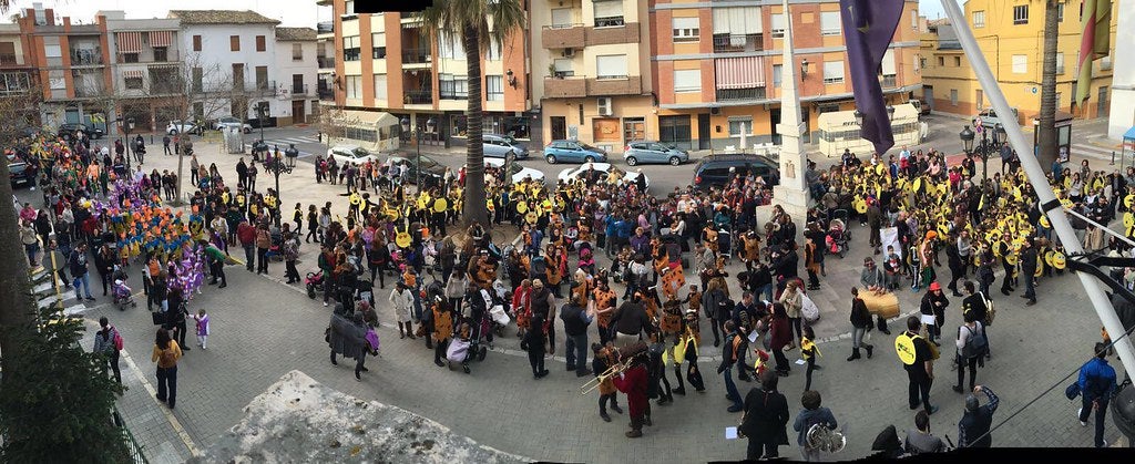 Els preparatius començaren, coordinats per la Comissió Municipal d’Activitats Extraescolars, a les 15h, simultàniament, en la plaçeta Llopis i en la ronda de l’Almenà; des d’on eixiren l’alumnat de Sto. Domingo i el del Severí Torres, respectivament, acompanyats per les seues bandes de música: L’Atrilet i El Severí.