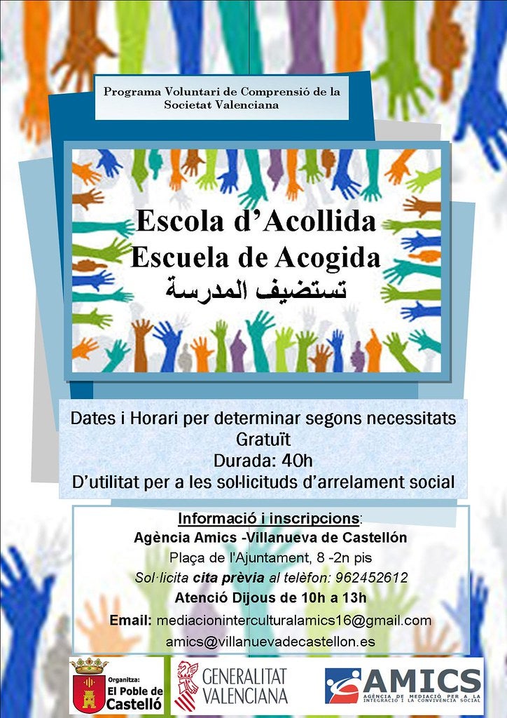 Si per altra banda et trobes en situació irregular , vols demanar l’arrelament social, però encara no has fet el Curs de l’escola d’Acollida, posa’t en contacte amb nosaltres perquè anem a posar -ne en marxa una pròximament.