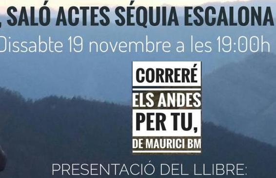 CORRERÉ ELS ANDES PER TU és el nom d’aquesta història novel·lada per Maurici Belmonte. El proper dissabte 19 de novembre al Saló de la R. Séquia Escalona i a partir de les 19:00h, Guadalupe Ribes s’encarregarà de presentar un acte on l’autor ens donarà a conèixer la seua darrera novel·la.
