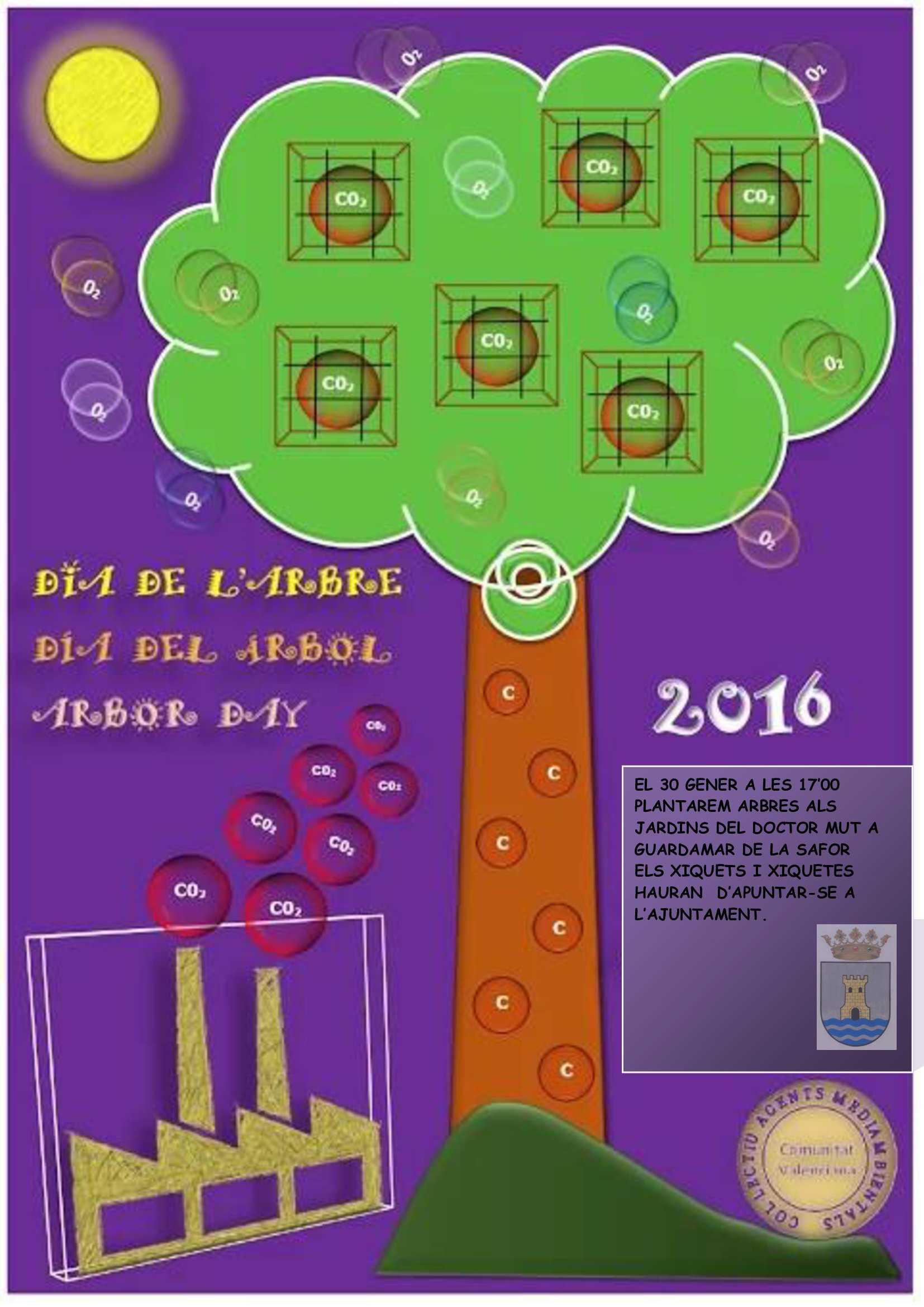 L’Ajuntament de Guardamar de la Safor, amb motiu del dia de l’arbre, ha convocat per al dissabte dia 30 de gener de 2016 als xiquets i xiquetes de Guardamar de la Safor per tal de plantar arbres als jardins municipals situats al carrer Doctor Mut de Guardamar de la Safor.