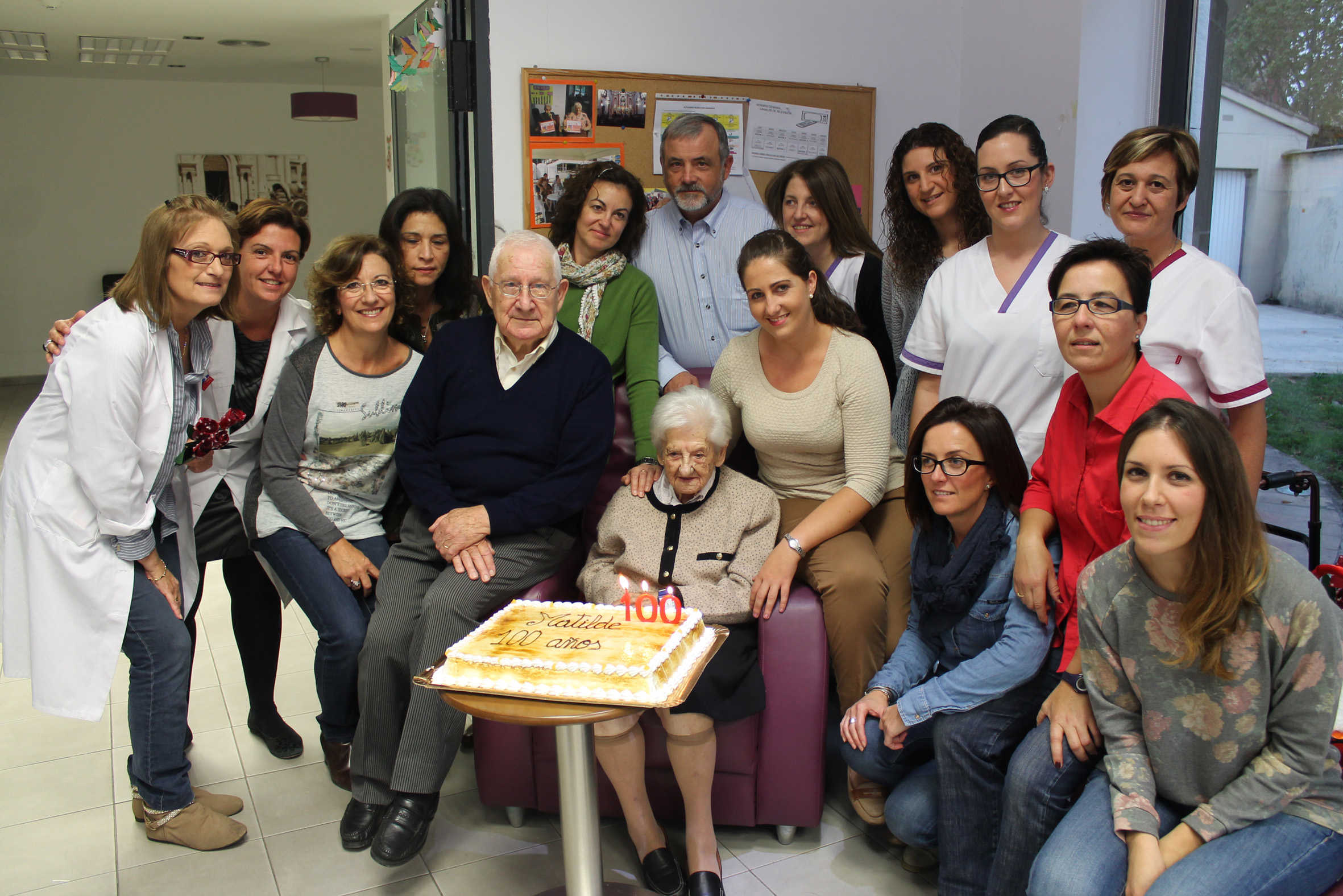Matilde no podia amagar la seua satisfacció i emoció al veure’s rodejada de familiars, companys i treballadors de la Residència en un dia tan important per a ella. Que complisques molts més!