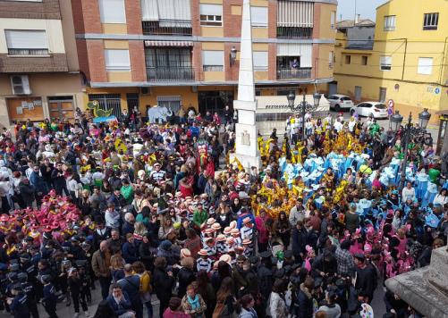 Després d’arreplegar els companys i amics del col·legi Hernández i de l’Escoleta Infantil, respectivament, els dos grups coincidiren a la plaça de Pepe Roig; i des d’ací començaren, acompanyats sempre per la Policia Local, el passacarrer col·lectiu pel centre del poble fins arribar a la plaça de l’ajuntament.