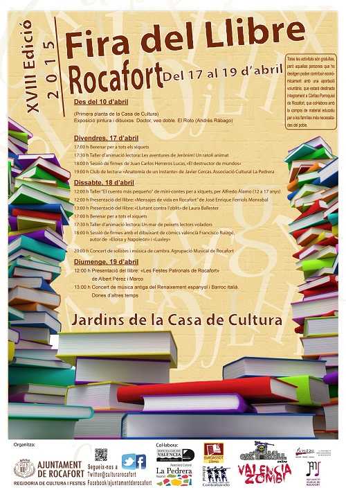 Els llibres seran els protagonistes durant els dies 17, 18 i 19 d’abril a Rocafort, un cap de setmana en el qual la Regidoria de Cultura de l’Ajuntament ha preparat activitats per a tots els públics en la Casa de Cultura.