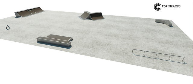 El Skate Park tindrà una superfície propera als 450 metres quadrats. L’espai albergarà 2 quarter de 0,95 x 2,4 metres, 2 quarter de 0,6 x 2,4 metres, 1 barana de 4 metres, 1 planter amb box i una pool jam.