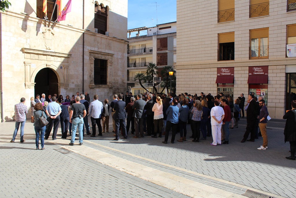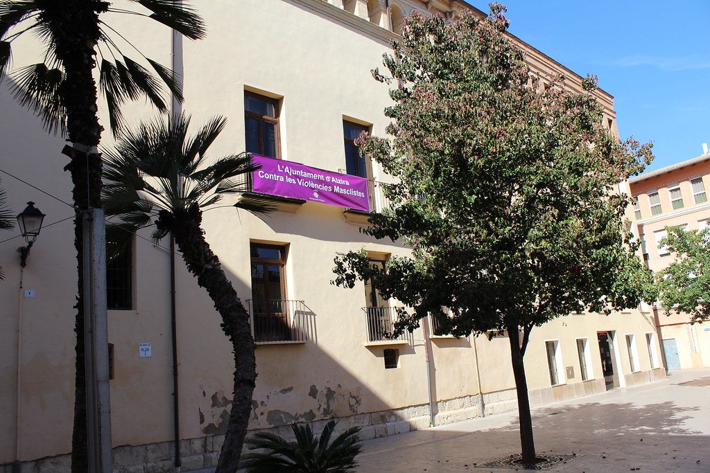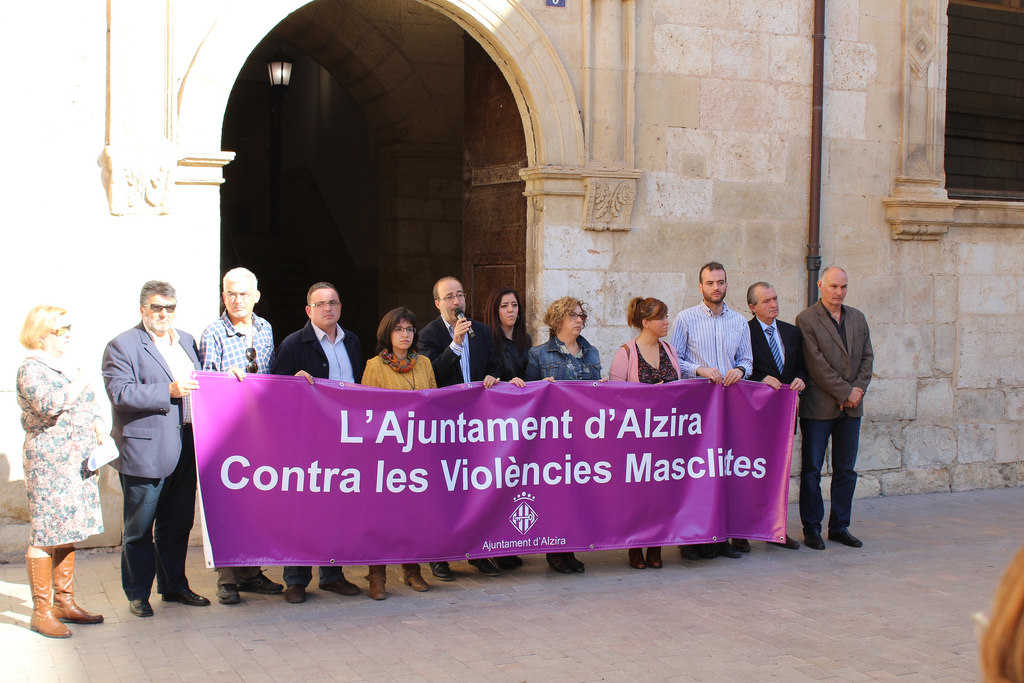 Este matí ha tingut lloc a la porta de l’Ajuntament d’Alzira una concentració per a donar lectura a la moció amb motiu de la Marxa Estatal contra les violències masclistes.