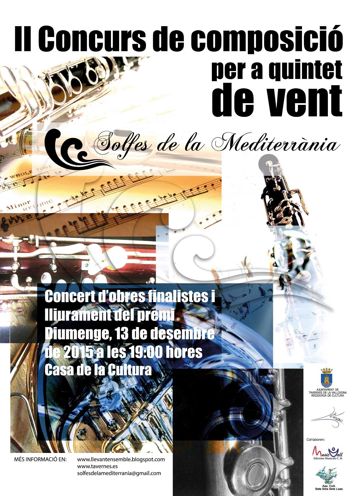 El premi II Concurs de Composició Solfes de la Mediterrània es donarà a conéixer el proper diumenge 13 de desembre de 2015 en el concert que tindrà lloc a la Casa de la Cultura de Tavernes de la Valldigna a les 19.00h on s’interpretaran les tres obres finalistes.