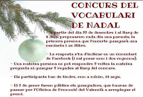Les normes de participació són senzilles, cas de no poder respondre dues vegades o més a la mateixa qüestió proposada i ser major de 14 anys. A partir del dia 7 de gener es faran públics els guanyadors que passaran per l’oficina de Promoció del Valencià a arreplegar els seus premis.