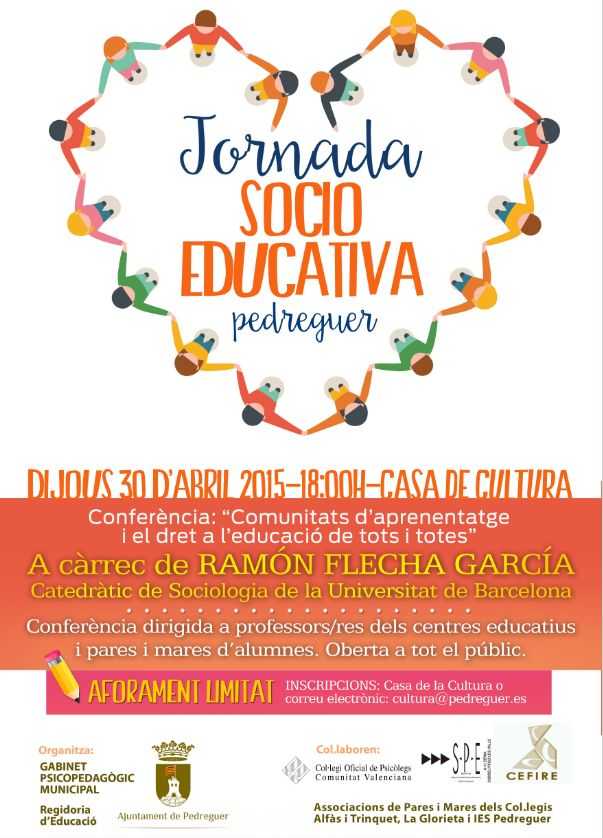 La Jornada constarà d’una conferència impartida pel prestigiós sociòleg de la Universitat de Barcelona, Ramón Flecha García, que parlarà de comunitats d’aprenentatge i el dret a l’educació de totes i tots.