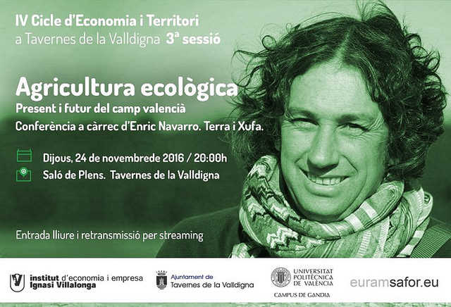 La tercera sessió consistirà en una xarrada amb el títol “Agricultura ecològica. Present i futur del camp valencià” a càrrec d’Enric Navarro, un enginyer agrònom que pertany a una família d’agricultors de l’Horta de València i practica l’agricultura ecològica des de fa més de deu anys. Ha creat, junt amb altres socis, una empresa de cultiu i explotació de la xufa ecològica situada a Alboraia, la capital de l’orxata.