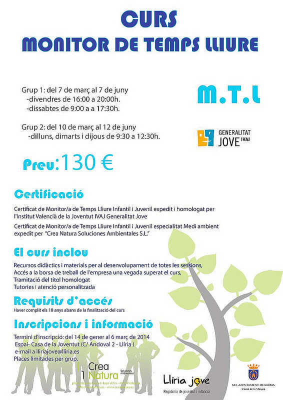 La regidoria de Joventut i Infància de l’Ajuntament de Llíria ha programat per als primer mesos de 2014 un total de 18 activitats lúdiques i formatives per a jóvens i xiquets.