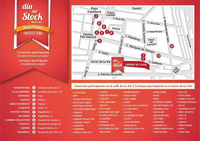 Seixanta-dos establiments comercials de moda, calçat, joieria, peletería, entrenament personal, nàutica, esports, joguets, articles de regal i puericultura exhibiran els seus productes d’estoc d’altres temporades o en oferta en els expositors que l’ajuntament instal·larà en el carrer La Via.