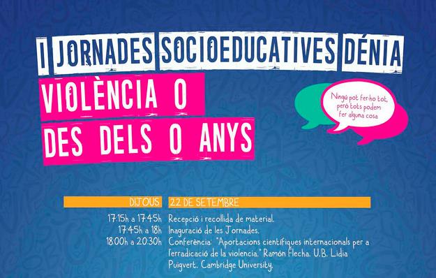 El Servei Psicopedagògic Escolar (SPE) Marina Alta i el Centre de Formació, Innovació i Recursos Educatius (CEFIRE) d’Alacant, amb la col·laboració del Ajuntament de Dénia, les associacions de pares i mares dels centres educatius de Dénia, La Xara i Jesús Pobre i gabinets municipals autoritzats de la comarca, han organitzat les I Jornades Socioeducativas de Dénia centrades en la temàtica ”Violència 0 des dels 0 anys”. Les jornades se celebraran a l’auditori del Centre Social els dies 22, 26, 27 i 28 de setembre, en horari de tarda.