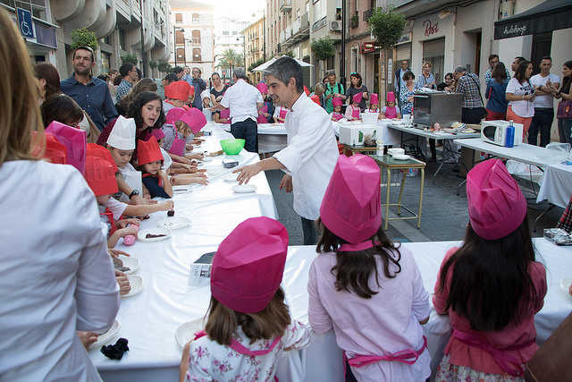 Desenes de xiquets i xiquetes participaven el passat dissabte de l’activitat “La cuina al carrer”, una de les cites de la programació de “Ontinyent al Carrer”. La campanya impulsada per l’Ajuntament a través del Consell Econòmic i Social (CES) per tal de dinamitzar l’activitat comercial local convertia durant la vesprada el carrer Martinez Valls en “Ontixef”, de la mà dels cuiners Dani Ferrero i Salva Hernández, que duien a terme tallers de cuina on els més menuts podien convertir-se en cuiners per un dia.
