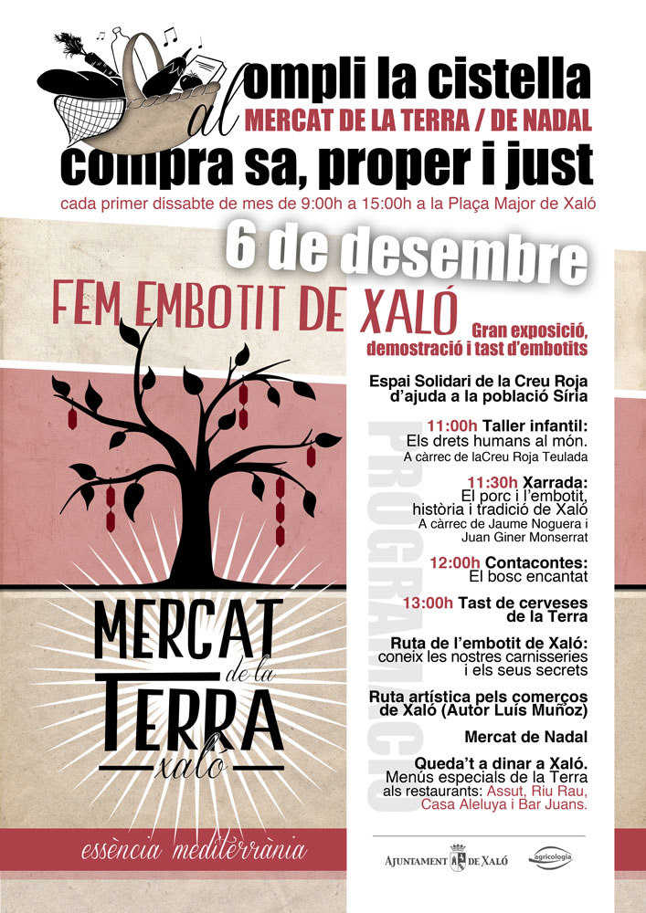 El Mercat de la Terra s’ha convertit en el seu any i mig de vida en un dels principals atractius el primer dissabte de cada més. Si el mes passat més de 3000 persones visitaven el mercat dedicat a l’oli aquest mes arriba un dels plats forts de l’any, el dedicat a l’embotit. Des de la repoblació mallorquina l’any 1609 Xaló s’ha convertit en un dels municipis més coneguts per la seua tradició en la confecció d’embotits casolans.