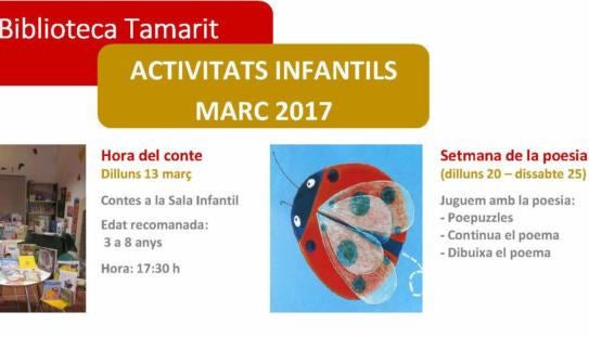 Del dilluns 20 al dissabte 25, per celebrar la ‘Setmana de la Poesia’, hi haurà jocs, dibuixos, ‘poepuzzles’ i lectures de poemes.
