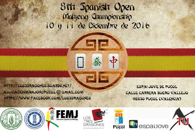 Este torneig és el major celebrat a Espanya fins a la data i l’èxit d’este 8u Open d’Espanya de Mahjong no és fruit d’un dia: han sigut tres anys d’esforç on ens hem hagut de guanyar la confiança dels jugadors europeus perquè vingueren; el boca a boca de jugadors en les edicions anteriors (2012, 2013, 2014 i 2015) ha aconseguit que este torneig siga de moment un èxit en assistència i confiem que també d’organització, ja que hem invertit moltes hores i il·lusió. També agrair a l’Ajuntament de Puçol, així com a Xtu, la Regidoria de Joventut, per la cessió de l’Espai Jove per a poder dur a terme estos tornejos.