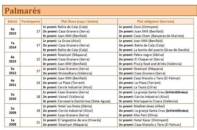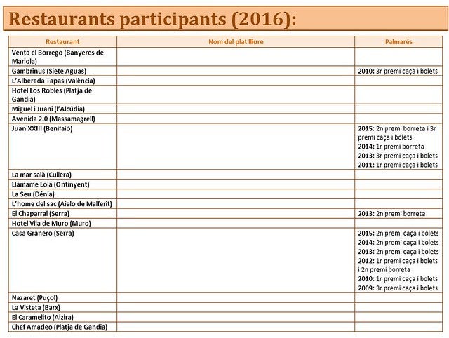 Relació de restaurants inscrits i palmarés: