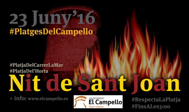 Se sol·licita a tots els veïns i visitants la col·laboració amb la Policia Municipal, Protecció Civil i el personal del Servei de Neteja Muncipal, perquè la Nit de Sant Joan se celebre sense conseqüències perjudicials per a les nostres costes i els seus usuaris.