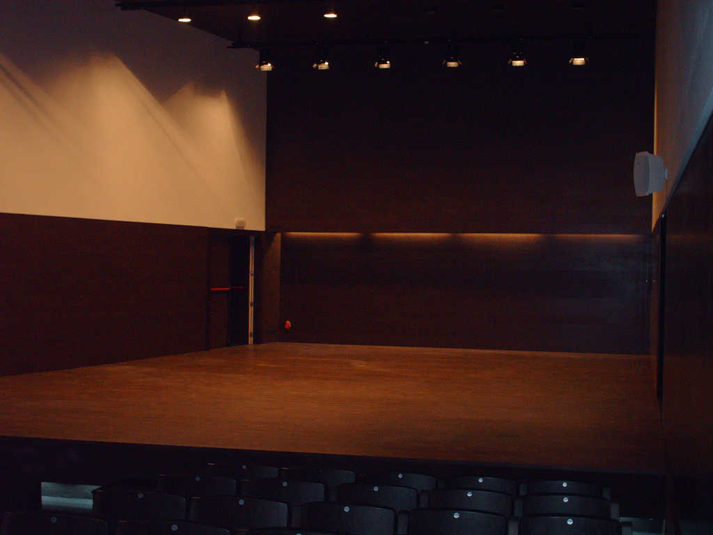 La intervenció realitzada a l’auditori ha permès millorar l’aïllament acústic de la sala i la seua il·luminació. Per aconseguir-ho s’ha dotat l’escenari de l’auditori amb un nou revestiment acústic de fusta que redueix les reverberacions i millora la qualitat sonora de l’espai. Per aconseguir la millora lumínica s’ha instal·lat un pont d’il·luminació amb control motoritzat.