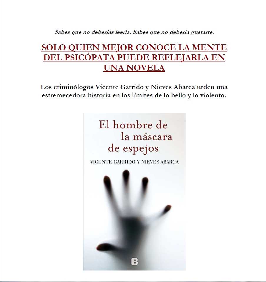 El criminòleg valencià Vicente Garrido presenta aquest divendres a Xàbia la seua última novel•la El hombre de la màscara de los espejos una obra coescrita amb la historiadora i especialista en perfils criminals Nieves Abarca.