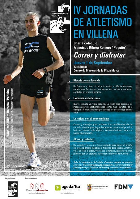 Una de les novetats per a l’edició d’enguany serà la xarrada que impartirà l’atleta Paquito Ribera, el dijous 1 de setembre en el Centre de Majors. La xarrada serà oberta al públic i en ella l’atleta parlarà sobre l’evolució que ha experimentat l’atletisme, les tècniques d’entrenament més aconsellables, així com consells per a gaudir de la pràctica esportiva a través de l’atletisme.