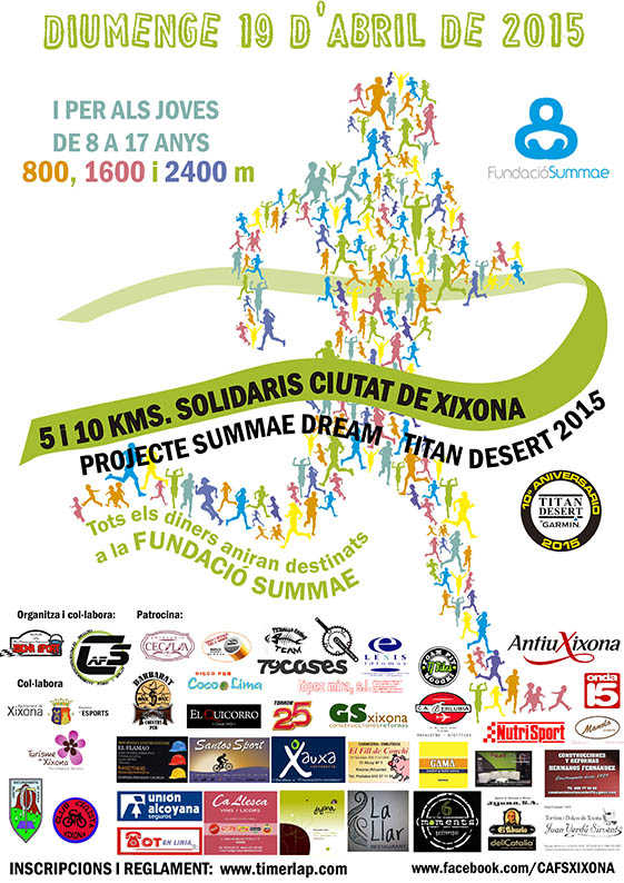 Carrera per a tota la família. Els xiquets de 8 a 17 anys tenen l’oportunitat de participar en els 800, 1.600 i 2.400 metres. Mentre que els adults poden participar en els 5 i 10 kms. Organitza CAFS Xisona.