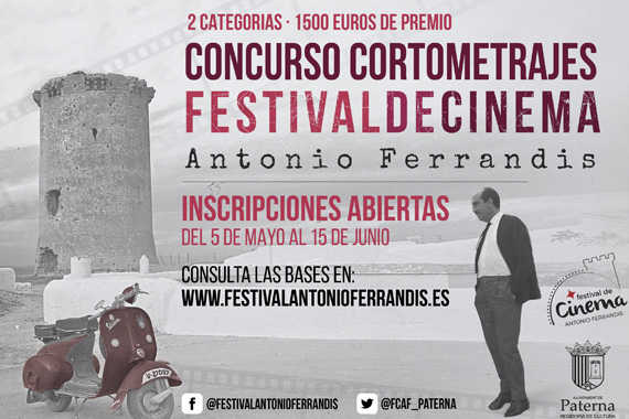 El Festival de Cinema Antonio Ferrandis, que se celebrarà del 20 al 22 d’octubre, ha organitzat un concurs de curtmetratges dividida en dos categories, una orientada al gènere de ficció i de temàtica lliure, i una segona que premiarà els jóvens realitzadors dirigit a menors de 25 anys i residents a la Comunitat Valenciana amb premis de 1.500 euros per a cada guanyador.