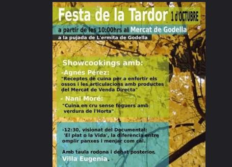 La tardor ha arribat amb la inestabilitat amb què se la sol relacionar, però per a dissabte s’espera bon temps. «Perfecte per a gaudir del matí en un lloc tan agradable com el Mercat de Venda Directa de Godella». Els encarregats d’aquesta fira pionera a la Comunitat Valenciana confien que hi haurà bon ambient i un gran seguiment de les activitats. «La gent que portarem com a ponents són persones amplament reconegudes en el món de l’ecologisme per l’interés del seu treball». Es tracta d’Agnés Pérez i Nani Moré. La primera parlarà —a partir de les 10 hores— de receptes de cuina dirigides a enfortir els ossos i articulacions, elaborades amb productes del mateix mercat. Per la seua banda, Moré instruirà als presents en la cuina en cru de productes de l’horta. Per a acabar, a les 12.30 hores es visionarà, a Villa Eugènia, el documental dirigit per la mateixa Moré, titulat El plat o la vida, un film que estableix les diferències, tal com diu l’autora, «entre omplir panxes i menjar bé».