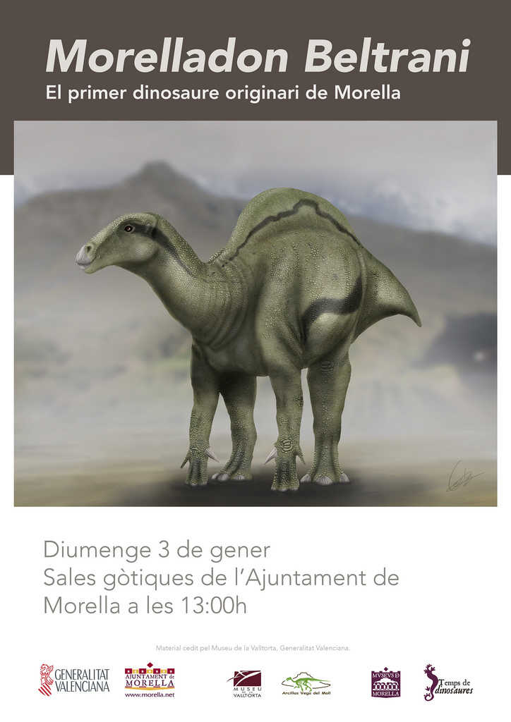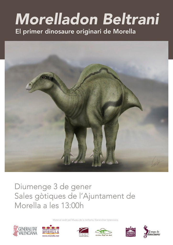 Cal recordar que Morelladon beltrani és el primer dinosaure descrit en la localitat. El material examinat d’aquesta espècie exclusiva està compost per les restes d’un únic individu representat per part de la regió dorsal i sacra, la regió de la pelvis i part de l’extremitat posterior. Morelladon beltrani és un ornitòpode estiracostern de mida mitjana, amb una longitud aproximada de 6 metres i una alçada d’uns 2.5 metres, molt similar tant en grandària com en proporcions a la forma europea Mantellisaurus atherfieldensis.