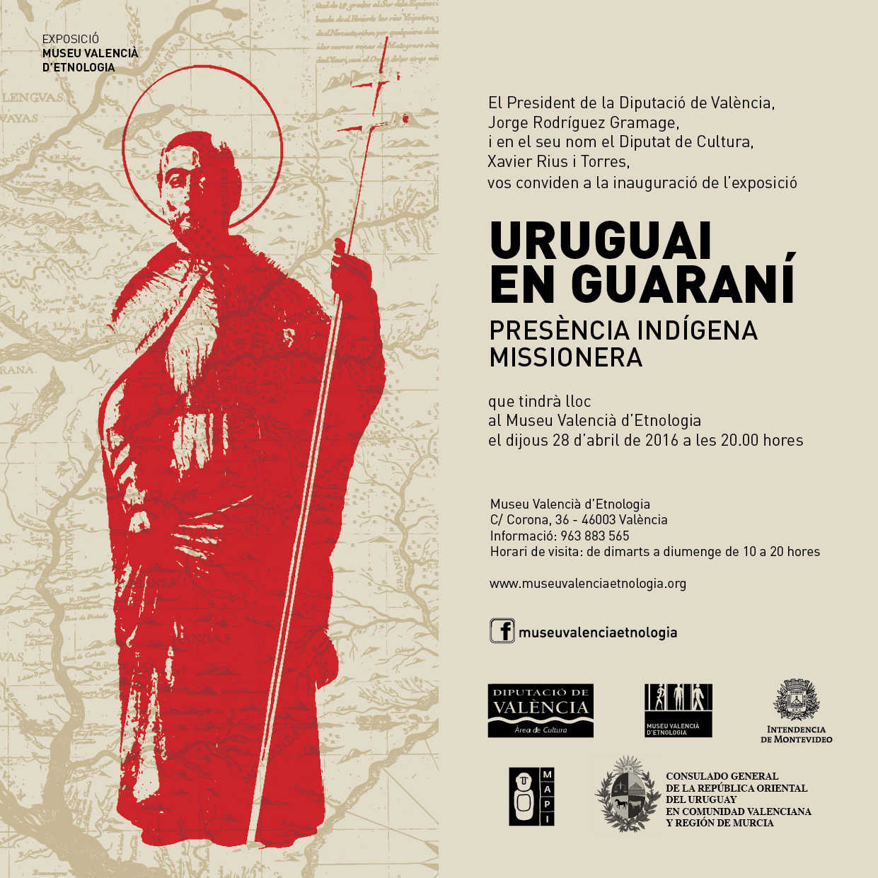 El Museu Valencià d’Etnologia presenta hui a les 20:00 l’exposició “Uruguai en guaraní. Presència indígena missionera”, que permaneixerà en la Sala II del Museu fins al 26 de juny.