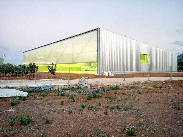 La instal·lació ha estat possible després que l’Ajuntament s’acollira a una subvenció de 1.368.211,07 € atorgada per la Generalitat Valenciana dintre del Pla Confiança del 2009. Per qüestions pressupostàries el projecte inicial no podia portar-se a terme en la seua totalitat, cosa que va comportar que es dividira en dues fases, de les quals se n’ha realitzat la primera, que habilita un pavelló amb pista central, grades, vestidors, banys, sala de calderes, infermeria, consergeria i urbanització exterior. La segona fase, en cas de realitzar-se, permetria ampliar els vestidors i comptar amb una cafeteria, tres sales polivalents, gimnàs i magatzems.