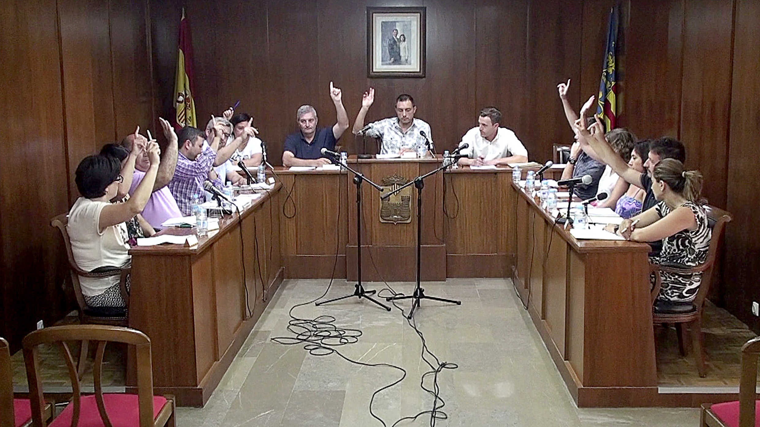 La iniciativa va partir del Govern municipal (Compromís-PSOE) a través d’una moció conjunta presentada per les dues forces polítiques. El portaveu de Compromís, Jose Martínez, encarregat d’argumentar la moció, va fer una introducció per a situar el nomenament que va fer la corporació municipal de 1940 en el context de la Guerra Civil i la repressió de postguerra. Martínez va explicar que no es tractava «d’elaborar una lliçó històrica, ja que per a això ja estan els llibres i els professionals, sinó de complir la llei». Després de llegir els articles de la Llei de Memòria Històrica que obliguen a la retirada d’objectes, reconeixements i mencions commemoratives referents a l’alçament militar franquista, el portaveu va manifestar la voluntat de l’Equip de Govern d’aplicar la legalitat vigent. Finalment, Martínez va dir que «aquestes accions s’emmarquen dins de la normalitat del funcionament d’un Estat democràtic».
