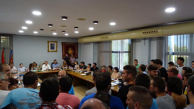 Un grup de persones, amb xiquets i xiquetes menors d’edat, han accedit a la sala de plens de l’Ajuntament per a mostrar el seu rebuig a la decisió del consistori de suspendre els festejos taurins fins que es puga convocar un referèndum.