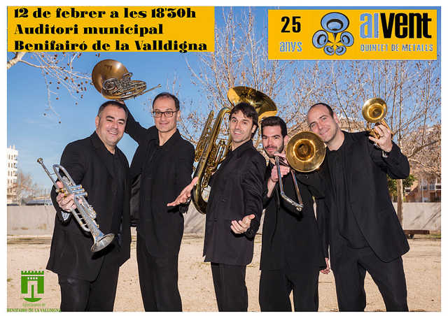 El quintet «Al Vent» celebra aquest any el seu 25 aniversari, dada a destacar si copsem la vida efímera de molts dels grups de música clàssica que naixen al País Valencià. El QMAV és un grup versàtil amb un repertori que abasta sis segles de música, des de l’edat mitjana fins al segle XXI. En la seua dilatada trajectòria el quintet ha participat en festivals de música clàssica, cicles de joves intèrprets, audicions educatives, festivals de jazz, esdeveniments esportius i un llarg etc, al que se sumen diversos treballs discogràfics com «3.650 dies» i «Vents de Festa…?».