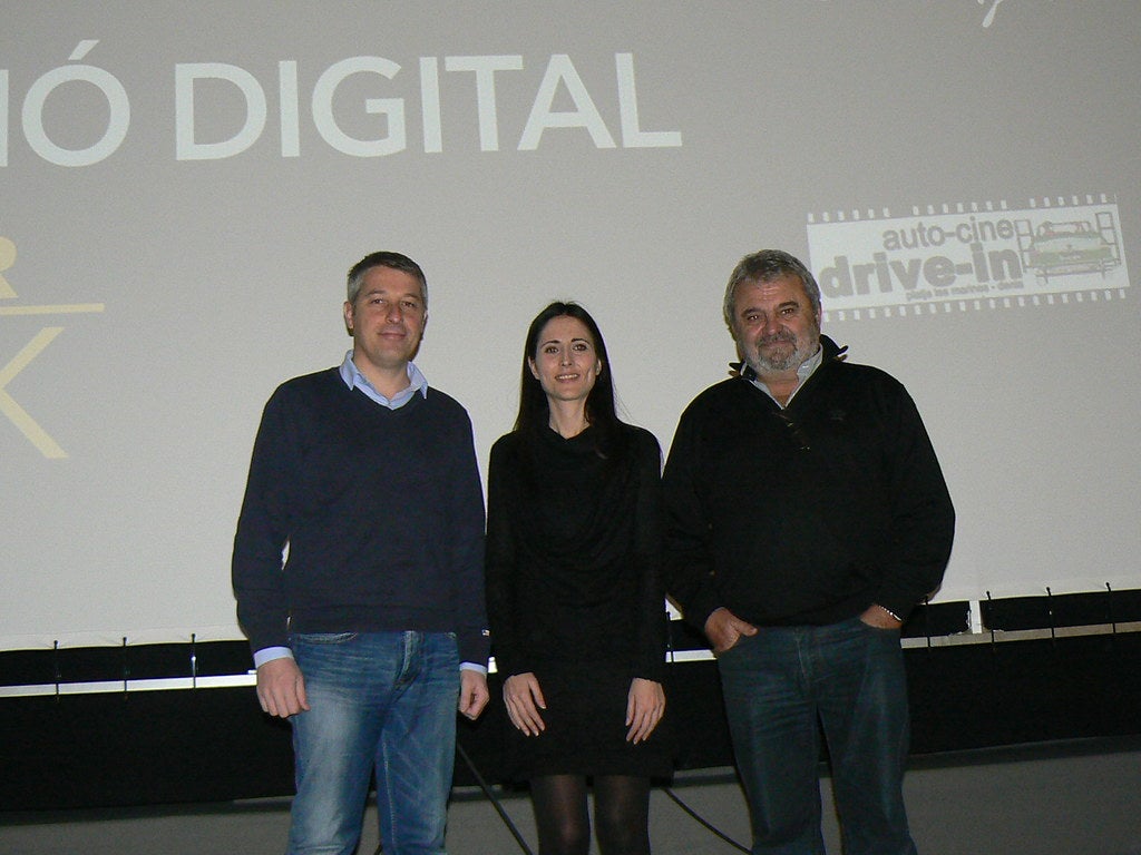El tinent d’alcalde delegat de Cultura, David González, acompanyat per el gerent de l’empresa concesionaria de cinema a Oliva i la responsable de marquenting de Versión Digital, ha presentat este matí a la presentació del nou sistema de projecció digital que ha incorporat el Teatre Olimpia a través de l’empresa concesionaria de cinema a Oliva, Drive In.