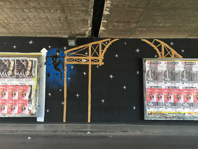 Una bona mostra d’açò és el gran treball que ha realitzat Patricia en el citat espai plasmant les figures de Batman, Catwoman o Superman que arriben a Burjassot per a visitar el seu Ajuntament, el Pati de les Sitges i el Mercat Municipal, representats també en el mural.