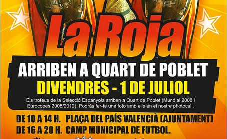 Els trofeus aconseguits per la selecció espanyola en el Mundial de Futbol de 2010 i en les Eurocopes de 2008 i 2012 visitaran Quart de Poblet demà, 1 de juliol, perquè els veïns i les veïnes puguen veure’ls i immortalitzar el record.