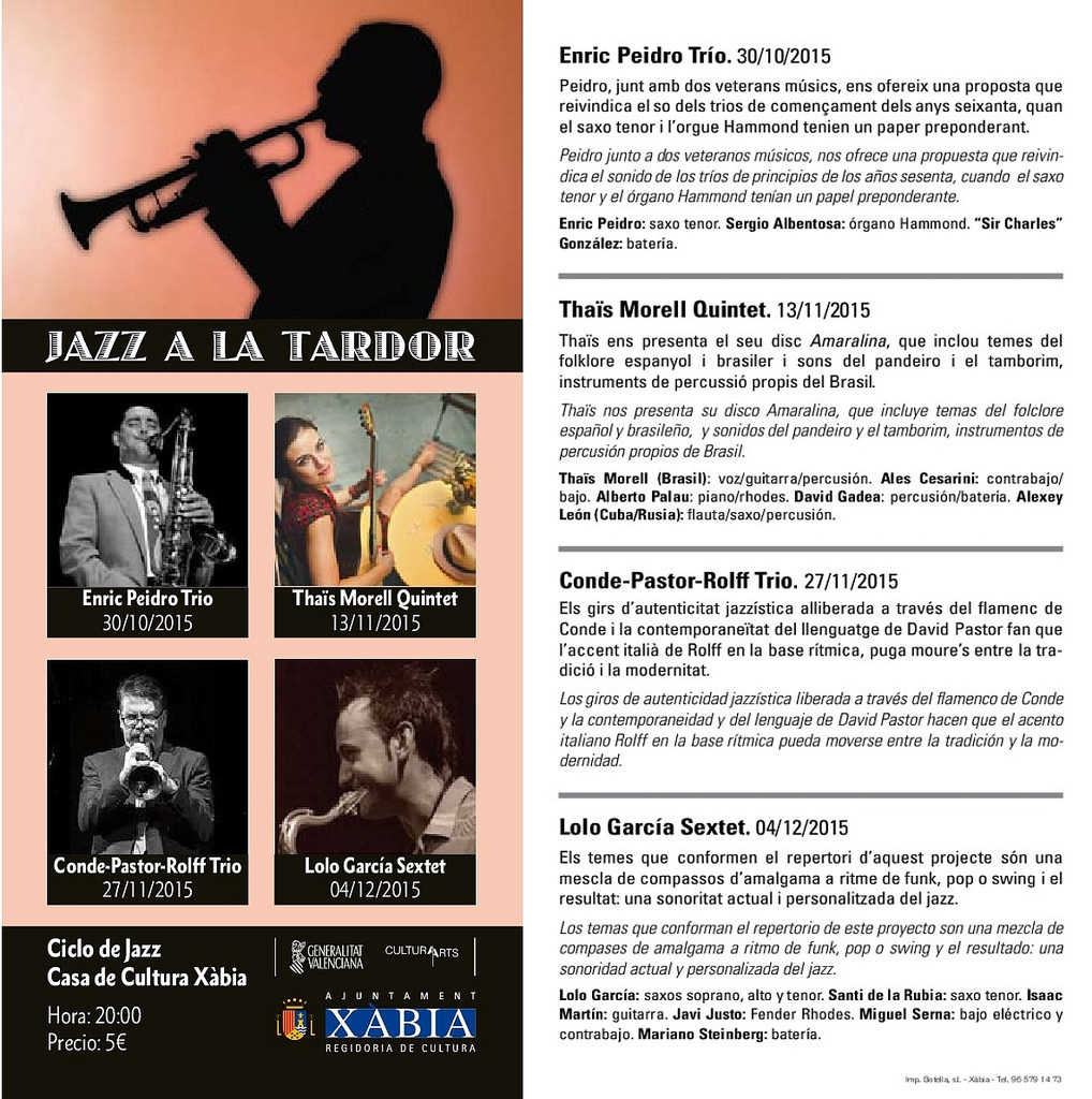 Aquest cicle impulsat per la regidoria de Cultura de Xàbia, que gestiona Quico Moragues, compta amb la col•laboració amb CulturArts i cerca fidelitzar als aficionats al jazz de la comarca.