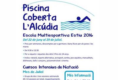 PISCINA COBERTA DE L’ALCUDIA. Cursets intensius de natació durant el mes de juliol. Escola multiesportiva del 22 de juny al 29 de juliol. Massamagrell