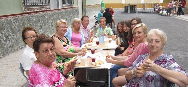 A l’Alcúdia, els veïns del carrer Santa Rosa han organitzat un esmorzar popular per a tot aquell que s’ha apropat. Tot i el mal oratge, els assistents han pogut encetar el dia amb un entrepà de pernil i formatge acompanyat de sangria i refrescs per als més menuts.